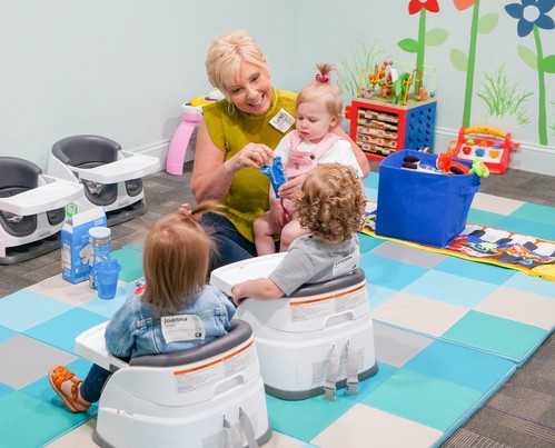 Your child will experience personal care from our well-staffed team. We keep our nursery rooms ready for your little ones with age-appropriate toys that are thoroughly cleaned between services. We know babies have specific needs and schedules, so when you. bring your child to the classroom, we have an easy-to-use form that. you can fill out to let our team know the feeding, sleeping, and changing needs your child has. We also take time to love and pray for your child each week.